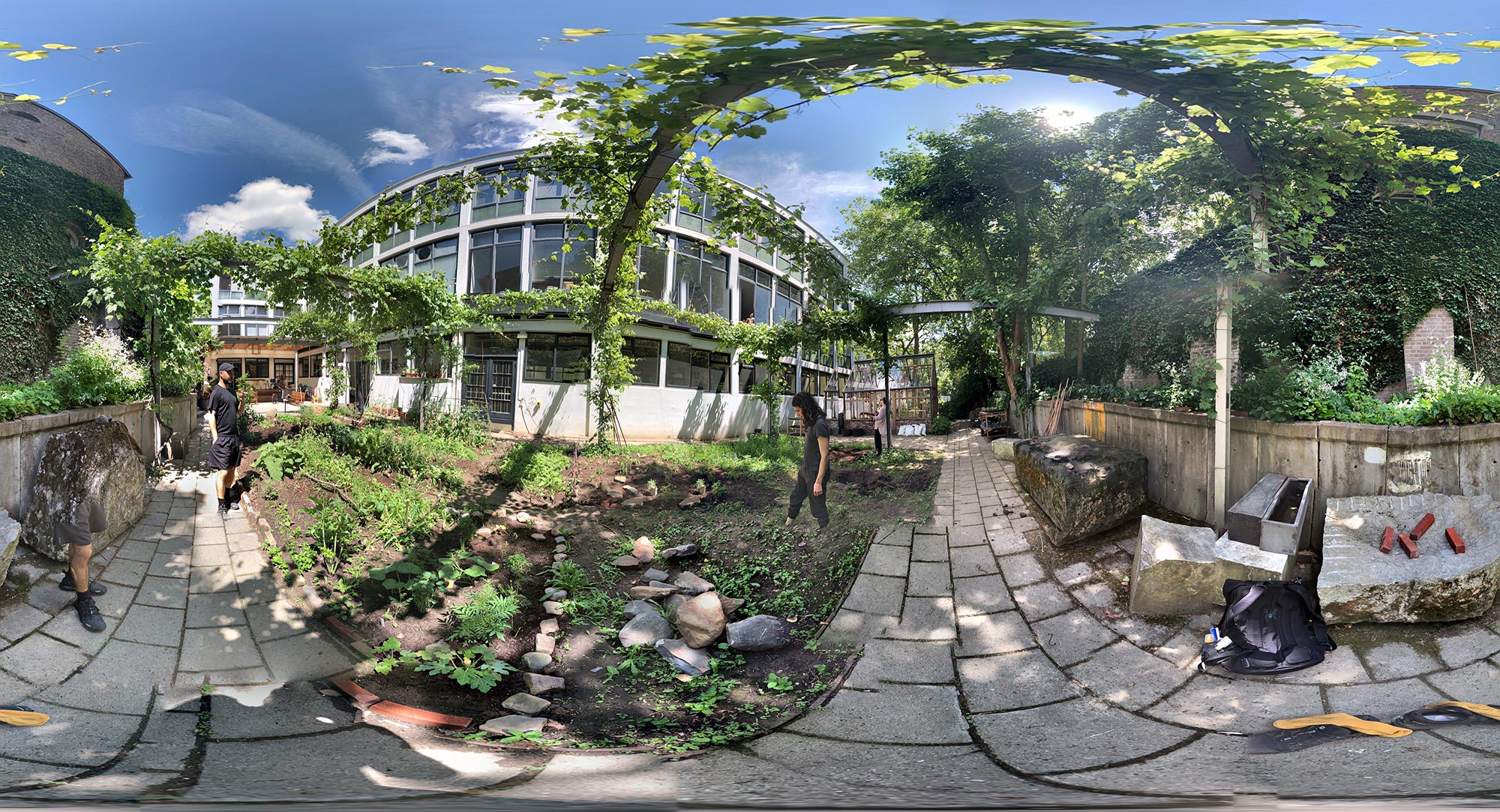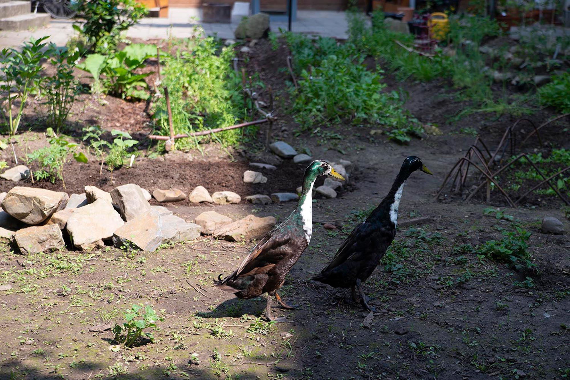 is a participatory work carried out in the intermediate space between the buildings in Jan van Eyck Academie, Maastricht. Making the garden was an experiment in ecology and all the questions that arise when you for example adapt five Indian runner ducks or in other ways intervene with a place of growth. Can we, as Silvia Federici questions, think of gardens as far more than a food source and instead as centers of sociality, resistance, knowledge production? Can they become sites of experimental ecologies and ways of thinking with a place? The work was supported generously by participants, the JvE Academie as well as local farmers and friends.