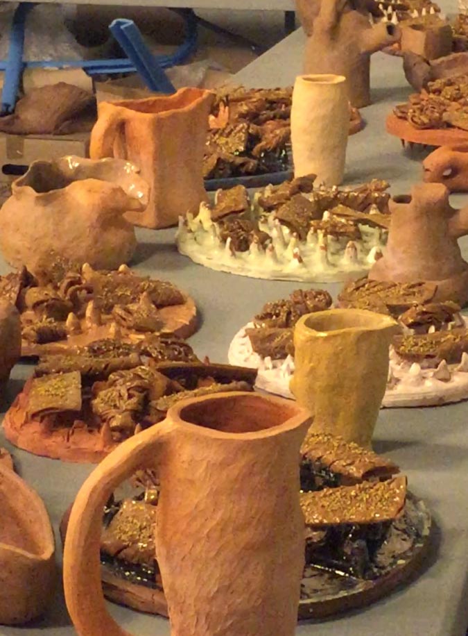 Steel, resin, charcoal, sheep dung, clay, found objects and waste material, hay, thorn stick, willow, rose-hip thicket, branches.