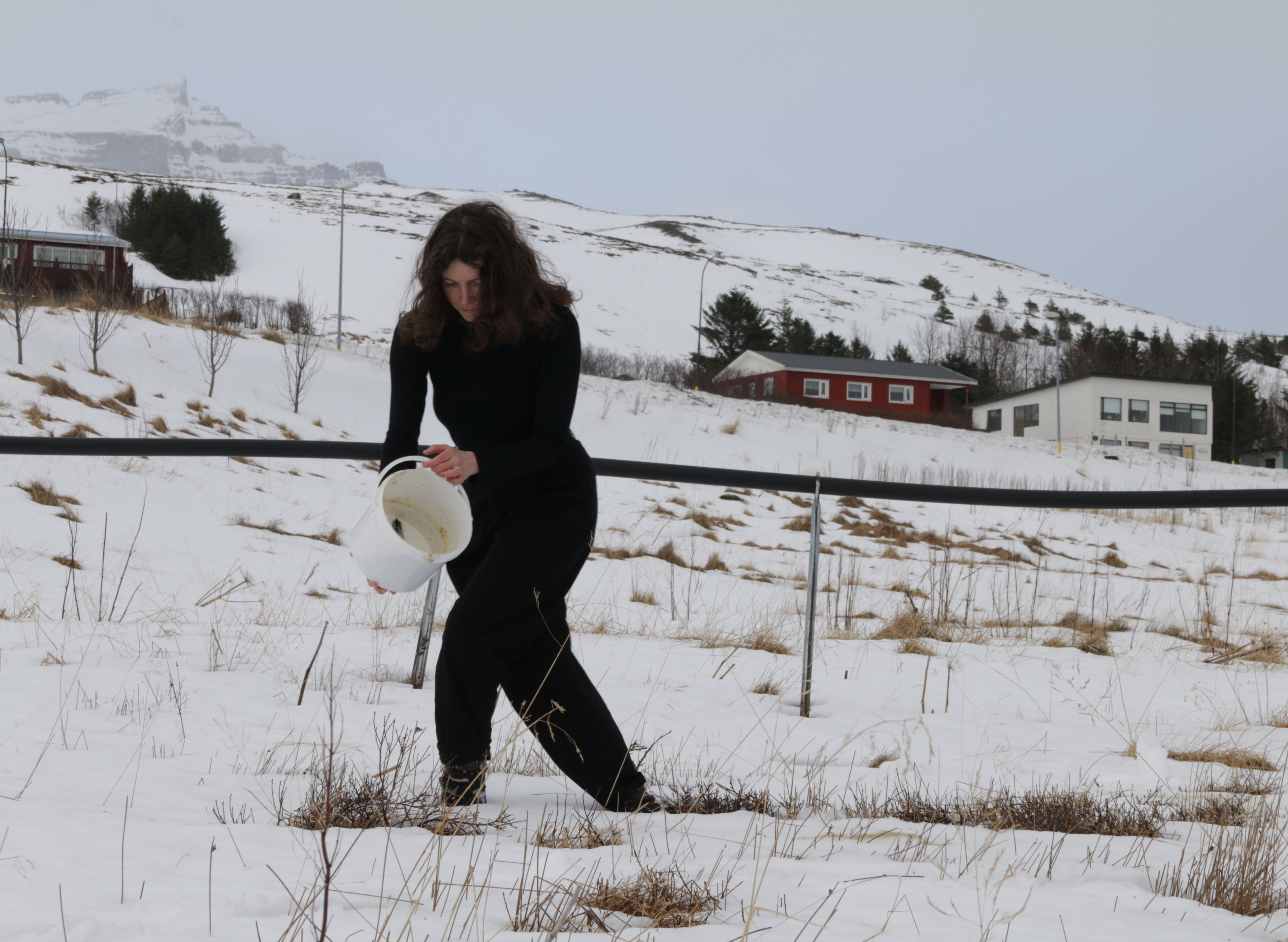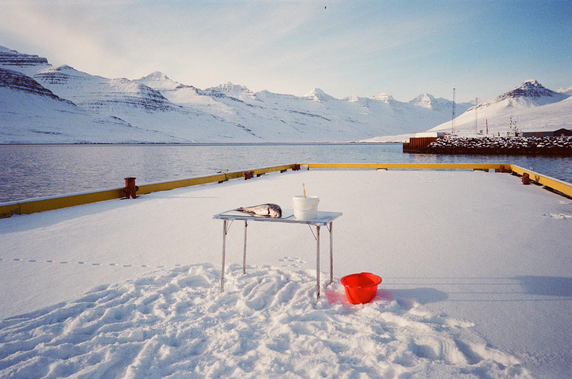 document an attempt to locate sites where the collective memory of Stödvarfjordur’s fishing culture has embedded itself, slipped away, become warped, preserved, re-imagined, and slowly fermented. Even evisceration leaves a trace: the strange somatic slime, the excretions of site-specific history, necessary residues of ephemerality. And how can ritual and corporeal gestures, acts which are ephemeral in nature, facilitate such remembering? To begin understanding these inquiries, Nickie worked with a traditional fermentation process to create a sauce from fish guts – known as garum – and involved local school children in the methodology of ritual. Text adapted from exhibition text written by Kristina Stallvik and Nickie Sigurdsson, 2022.