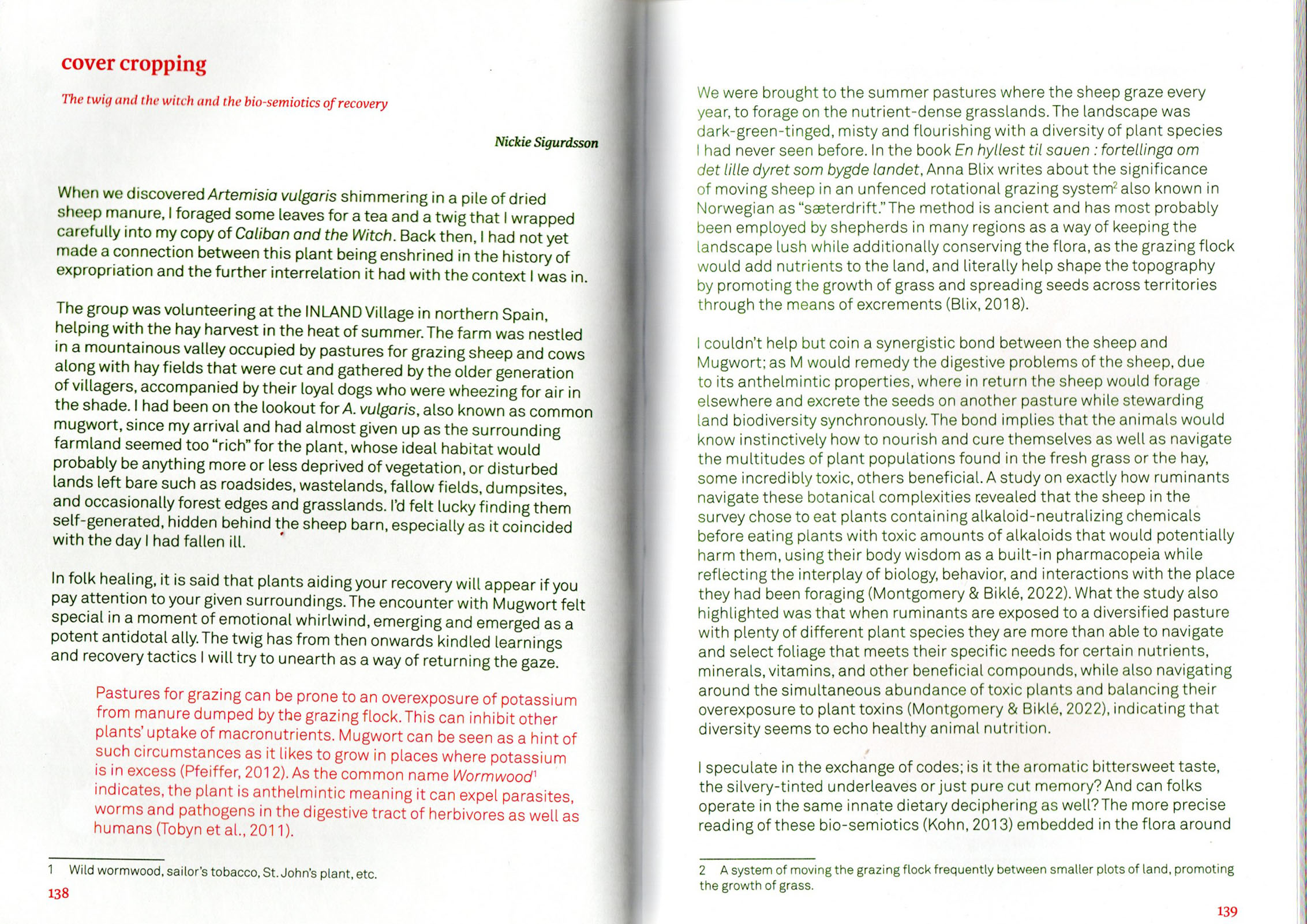 image 2-4 shows spreads from my essay contribution: Cover Cropping - The biosemiotics of Recovery.