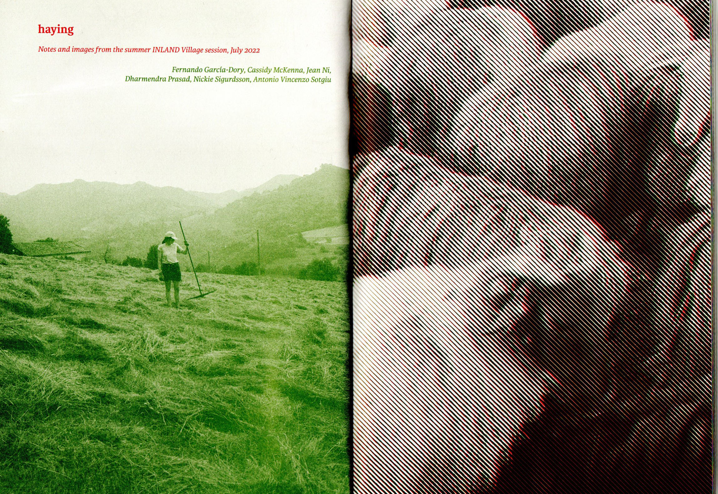 Landing is a publication that brings together reflections on agricultural practices, the poetics of land management and shepherding, as well as the shifting dialectics between rural and urban, human and more-than-human. Featuring contributions from participants of the Inland Academy 2022 and a wider network of collaborators, printed with Lumbung Press, and published by INLAND. Edited by Katy Dammers, Grace Denis, Jean Ni, and Jens Strandberg. The publication was launched at Foodculturedays Biennale, Vevey, 2023.